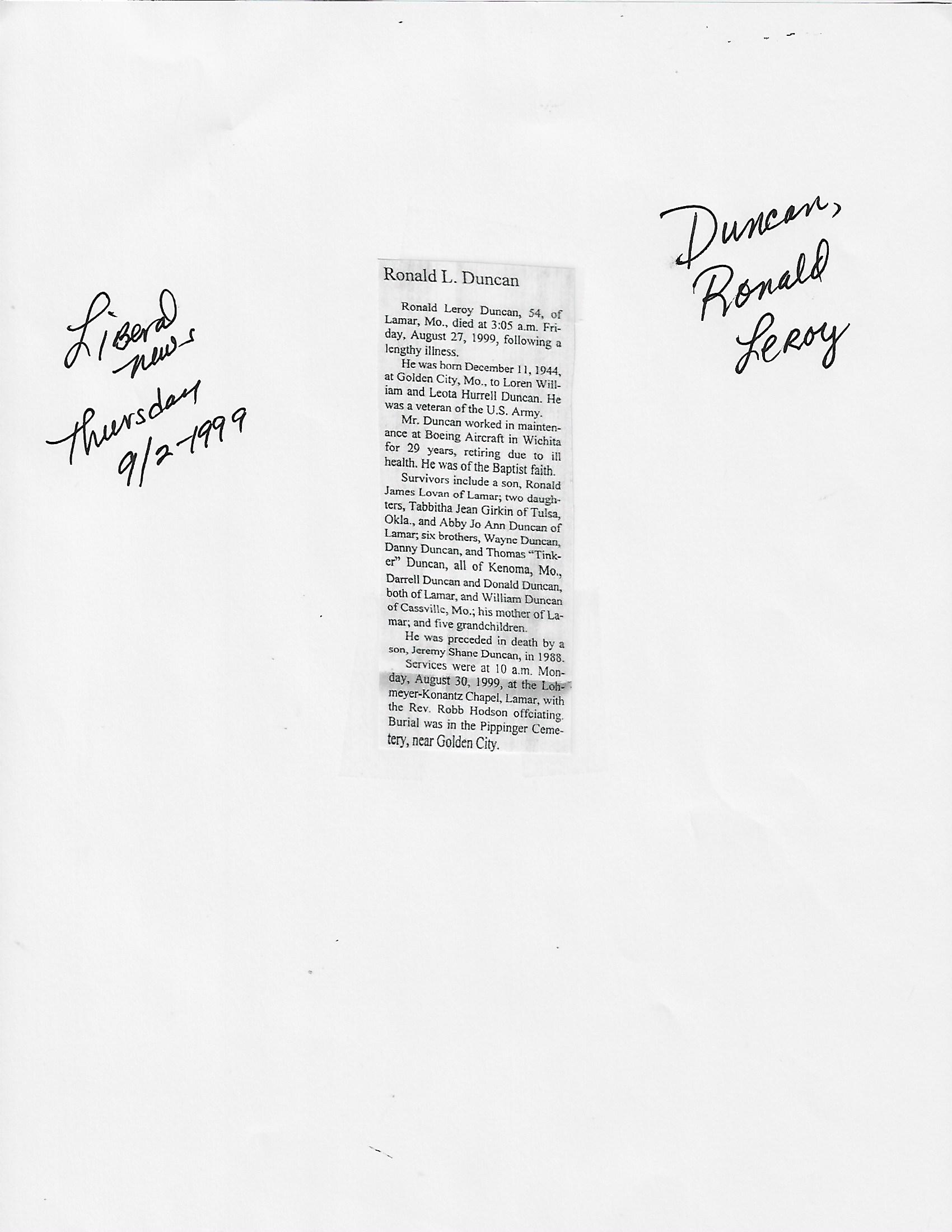 Duncan, Ronald Leroy