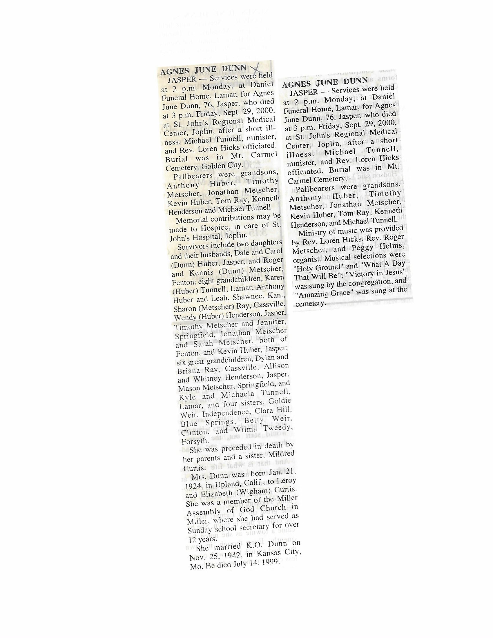 Dunn, Agnes June {Curtis}
