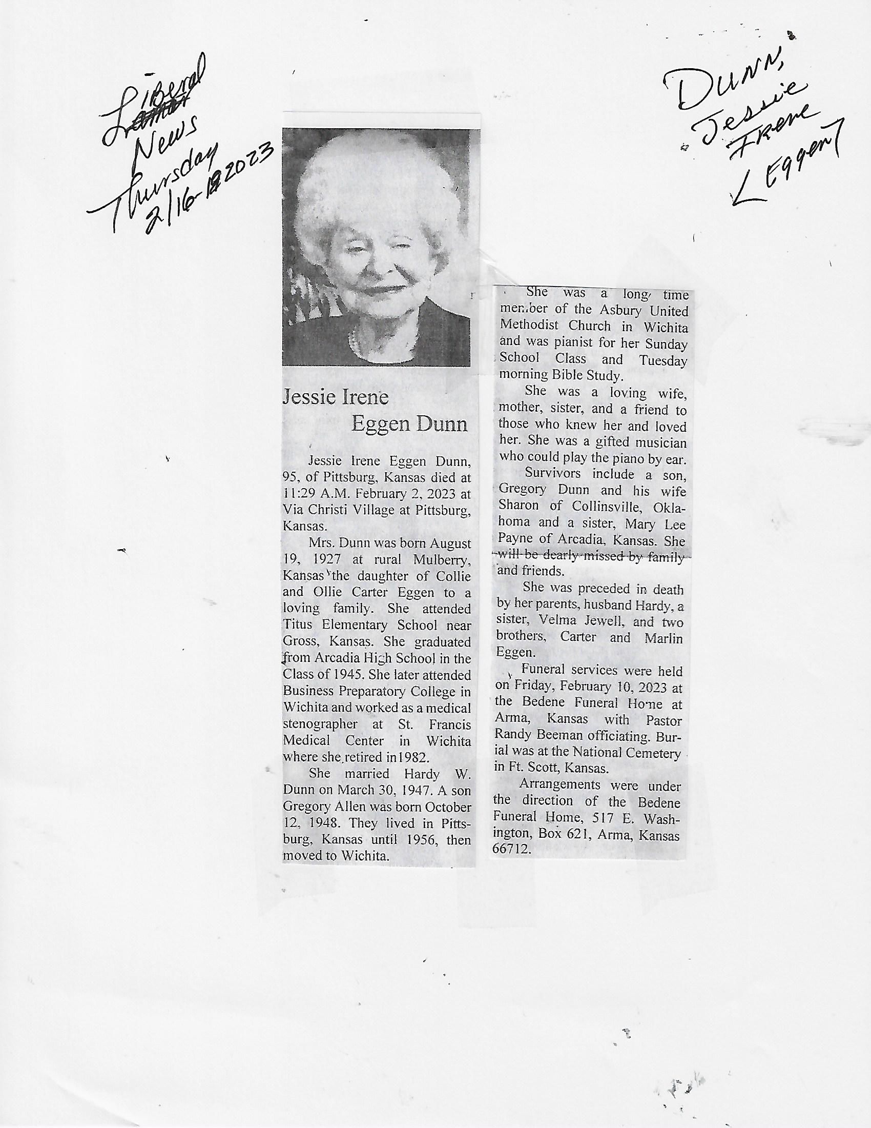 Dunn, Jessie Irene {Eggen}
