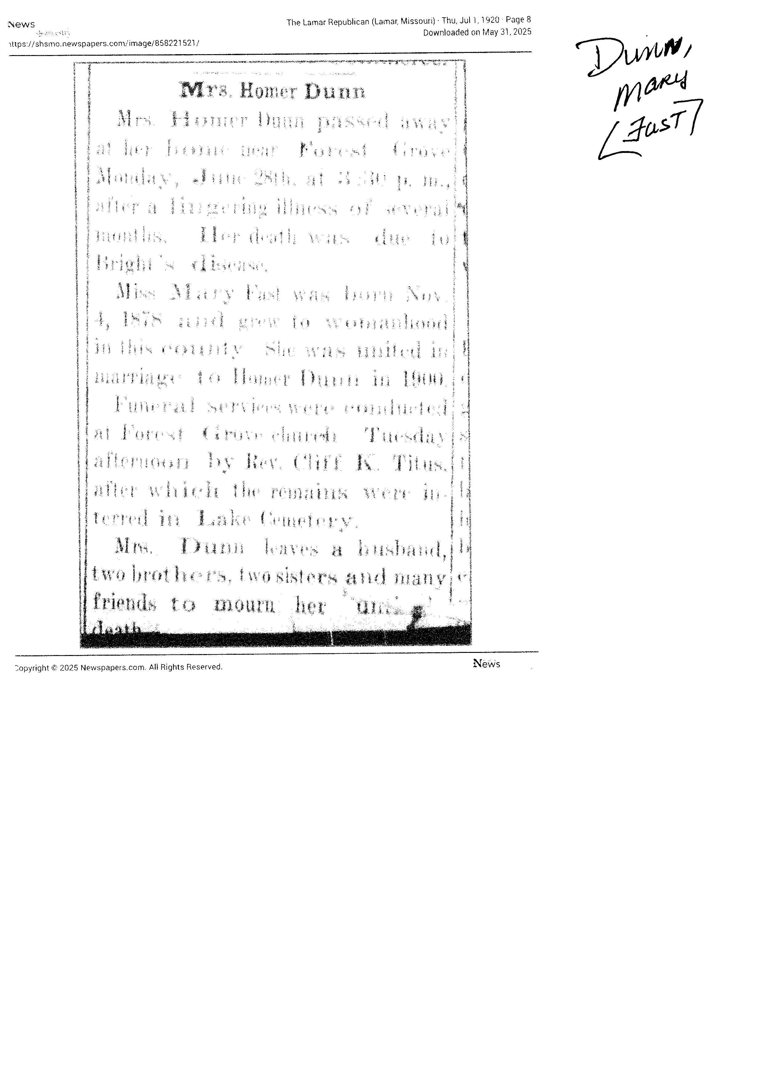 Dunn, Mary {Fast}