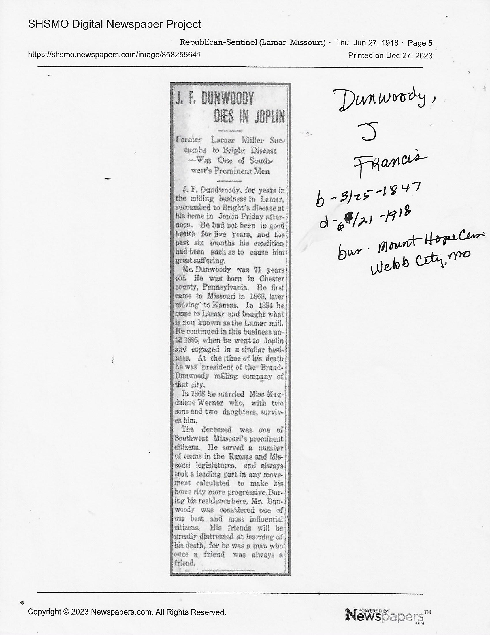 Dunwoody, J Francis