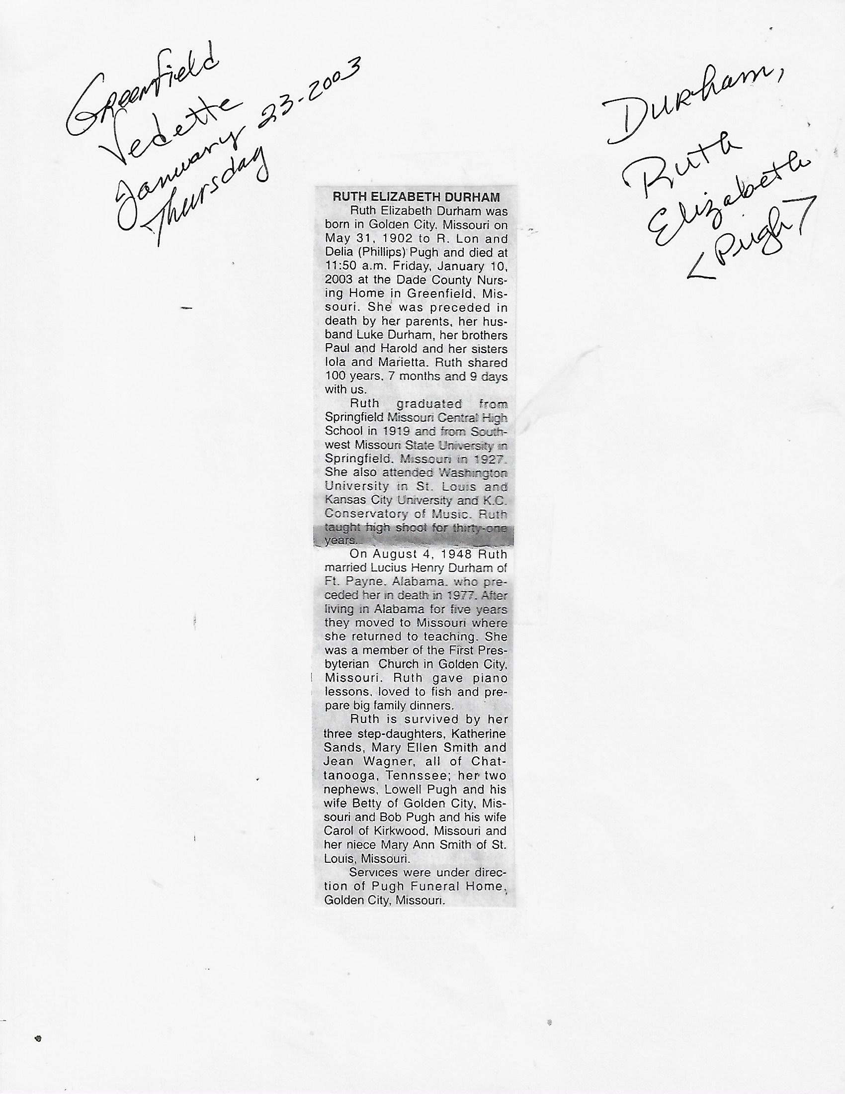 Durham,Ruth Elizabeth
