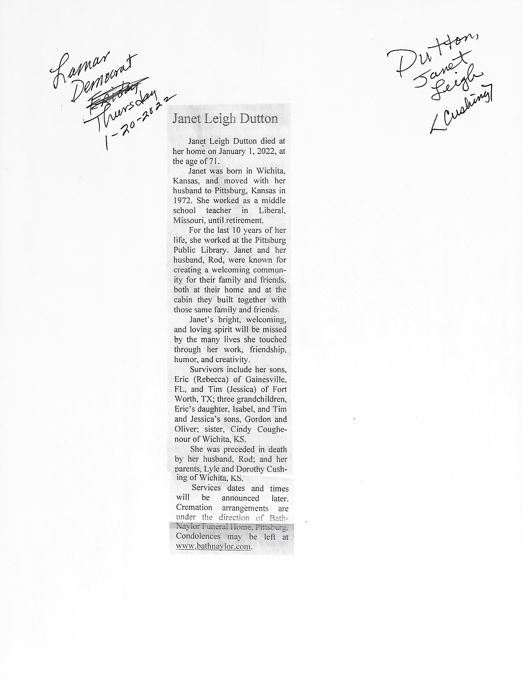 Dutton, Janet Leigh Dutton, Rosa E