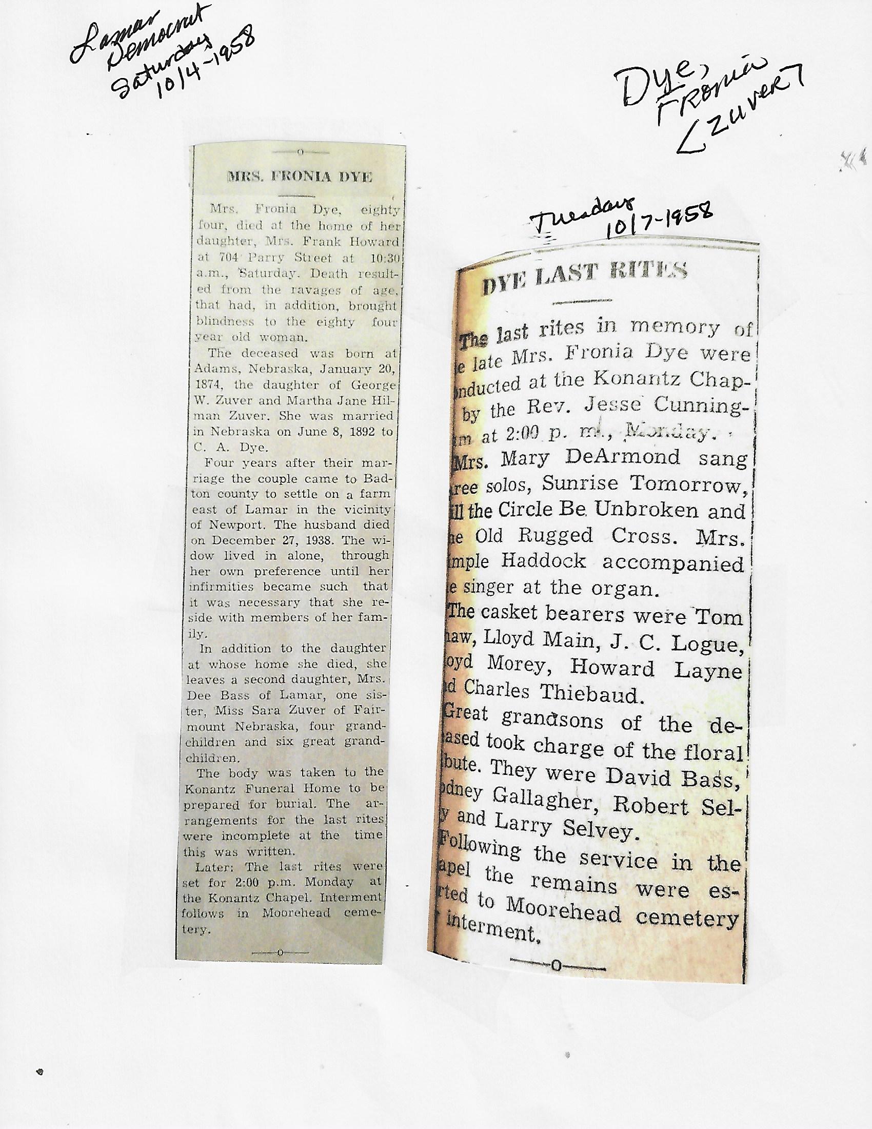 Dye, Fronia
