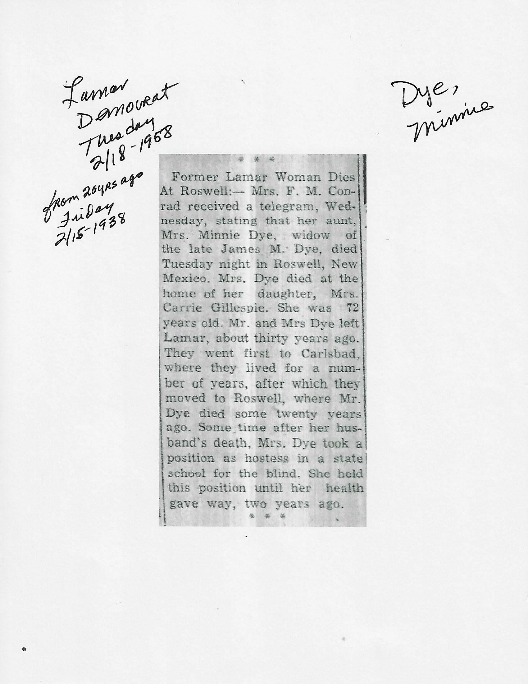 Dye, Minnie