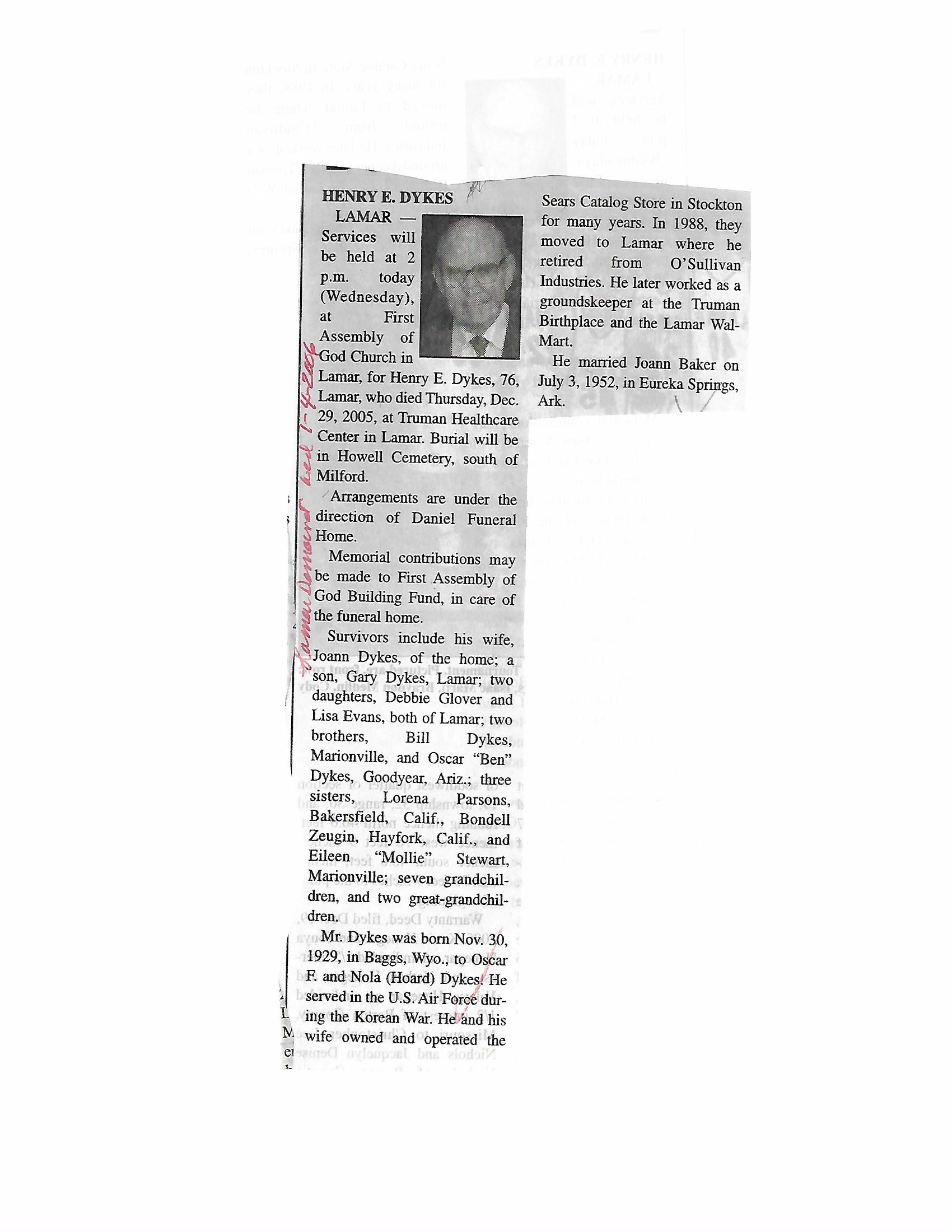 Dykes, Henry E
