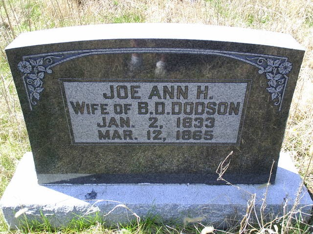 Joe Ann H wife of BD 1/2/1833 3/12/1865 Photo