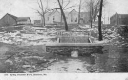 Swimming at the spring was one of the early day pastimes and perhaps the means of personal cleanliness. A pool was built near the outlet of the rock channel from the spring by a baffle that caused the water to be diverted into it before flowing on to the adjoining stream. But later sanitary measures also brought an end to this use.