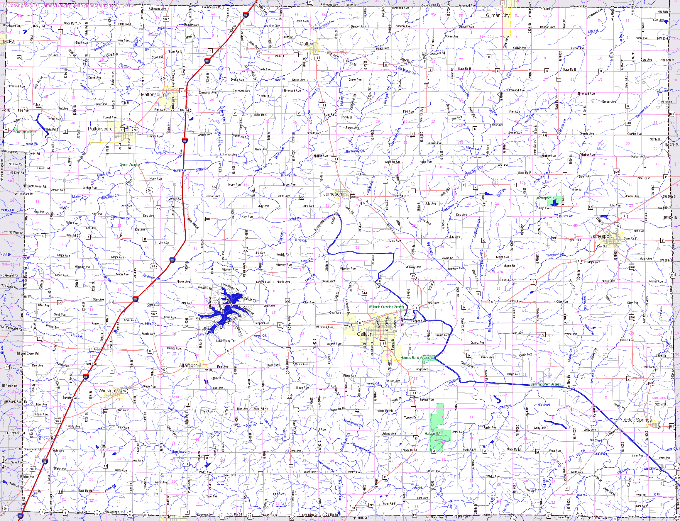 Large detail map of Daviess county