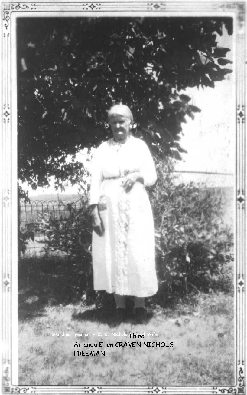 Nichols Family Photos![]() view full size image printed on picture Grandma Freeman - C. C. Nichols Second Wife Third is printed over the word Second and under that line is Amanda Ellen CRAVENS NICHOLS FREEMAN ![]() view full size image printed on picture Margaret Mae (Nichols) and John Kelso Powell 1921 |