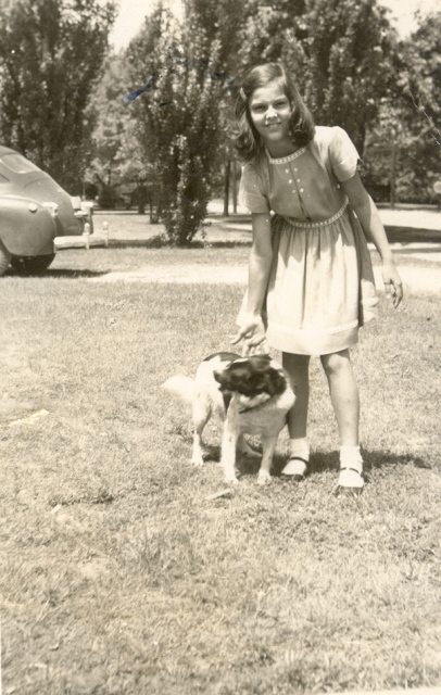 • Picture is of me, of course, taken in our front yard. The car was a 1947 Chrysler. The dog, whose name was Tyke, belong to Mr. and Mrs. Higginbotham who lived next door. I remember when Tyke was born - the day after President Roosevelt passed away!