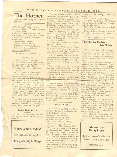 Photo Gallery-15-(Holcomb Hornet Dec. 1926 Page #-2-)