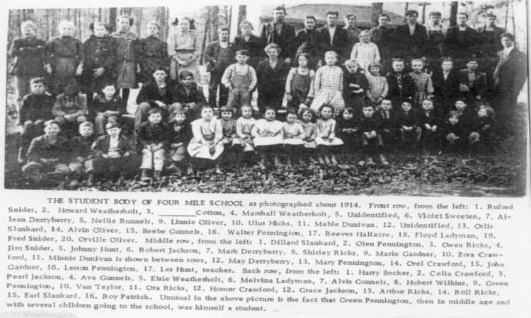 • Student body of Four Mile School 1914;