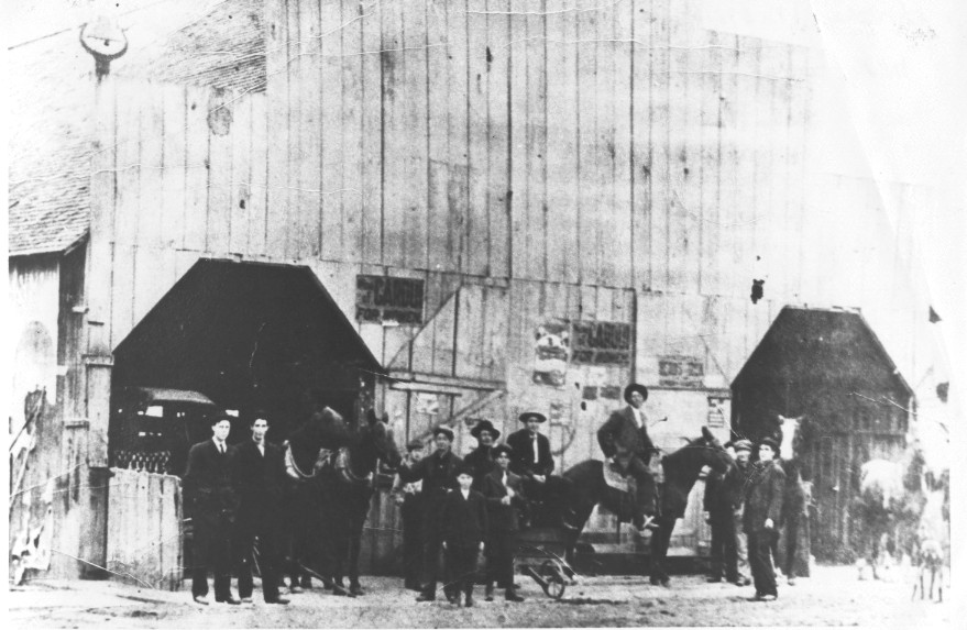 Photo taken in 1907, bldg appears rather old then, bldg later served as school bus garage/repair shop.