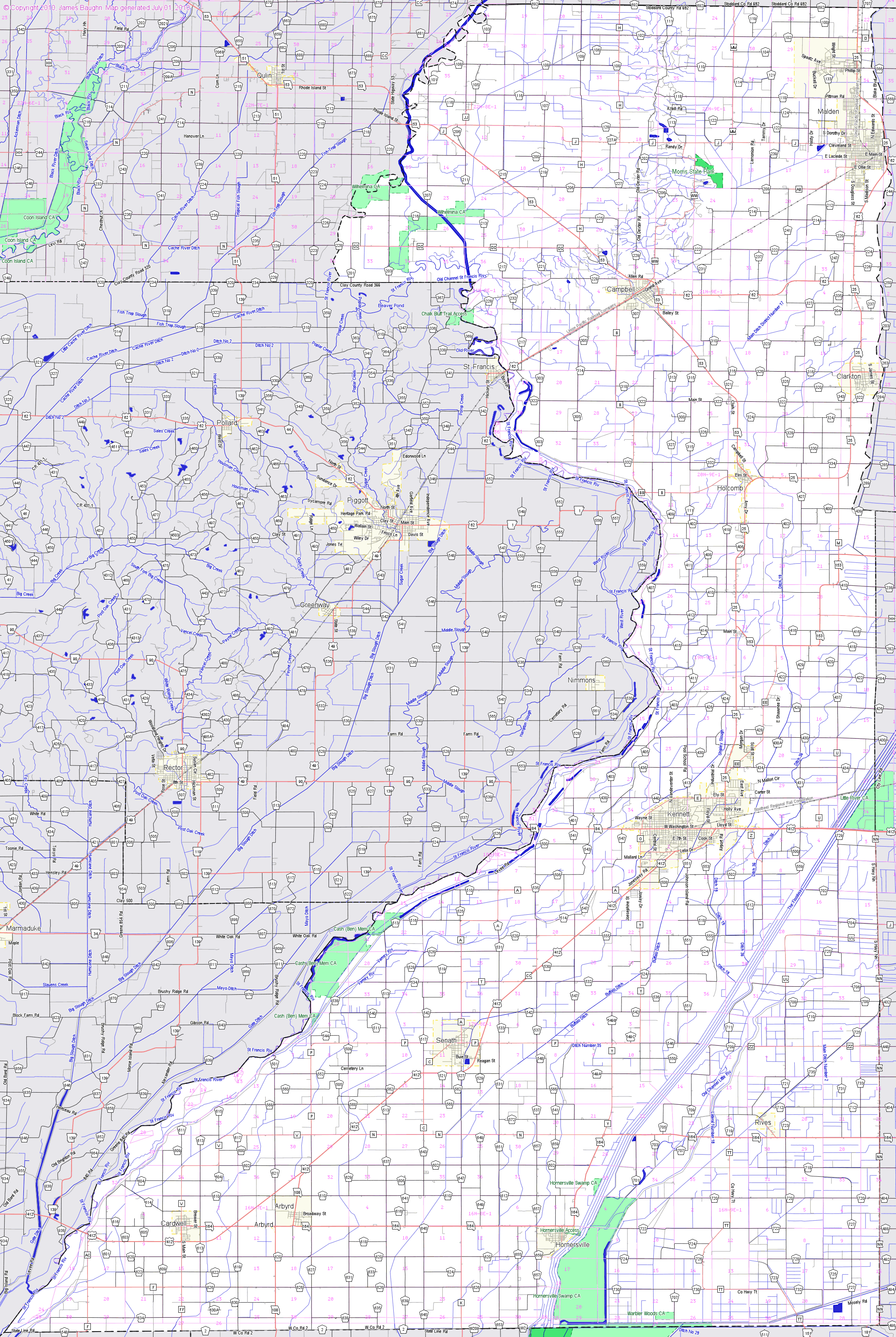 Large detail map of Dunklin county