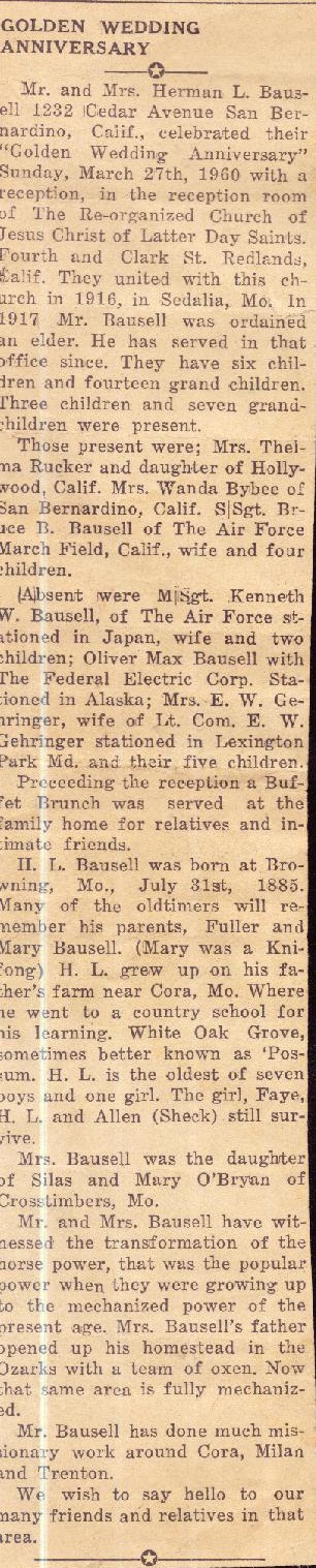 Like many families from Hickory County, the Bausells moved back and forth between Hickory County and various parts of the West, especially Colorado and southern California.