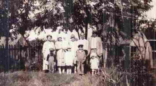Back row, left to right: Mary Emeline Hewgley O'Bryan, Mary Effie O'Bryan Bausell holding Wanda Rose Bausell, Othello O'Bryan Chappelow, Silas Wright O'Bryan, Herman Lee Bausell