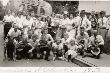 This is a group of people from the Weaubleau area going to the 1953 farmers' convention in Columbia.
