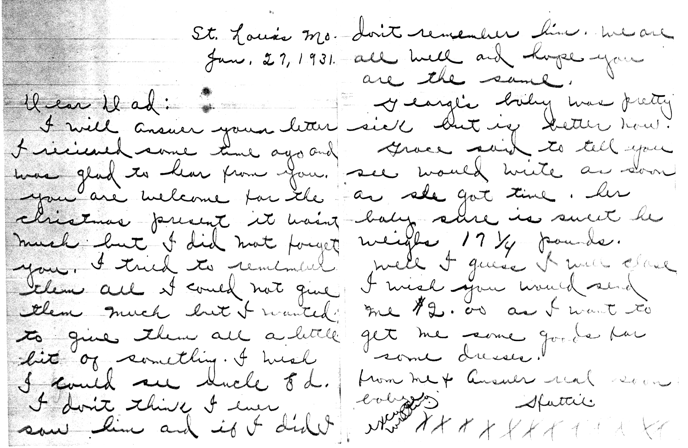 | Amelung, Hattie | Letter | 27 Jan 1931 | Iron | Letter from Hattie Amelung to her father, John Amelung. |
