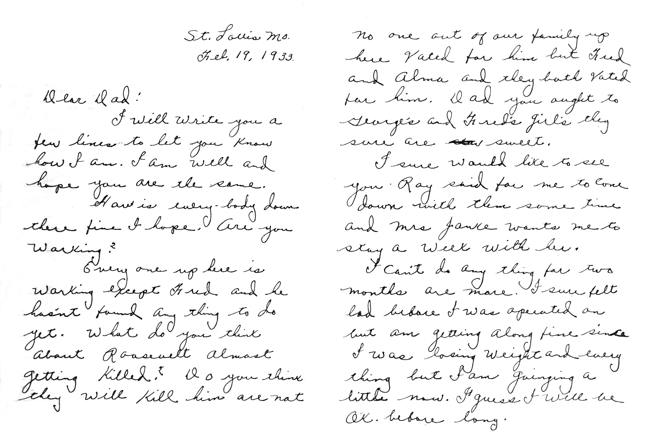 | Amelung, Hattie | Letter | 19 Feb 1933 | Iron | Letter from Hattie Amelung to her father, John Amelung. |