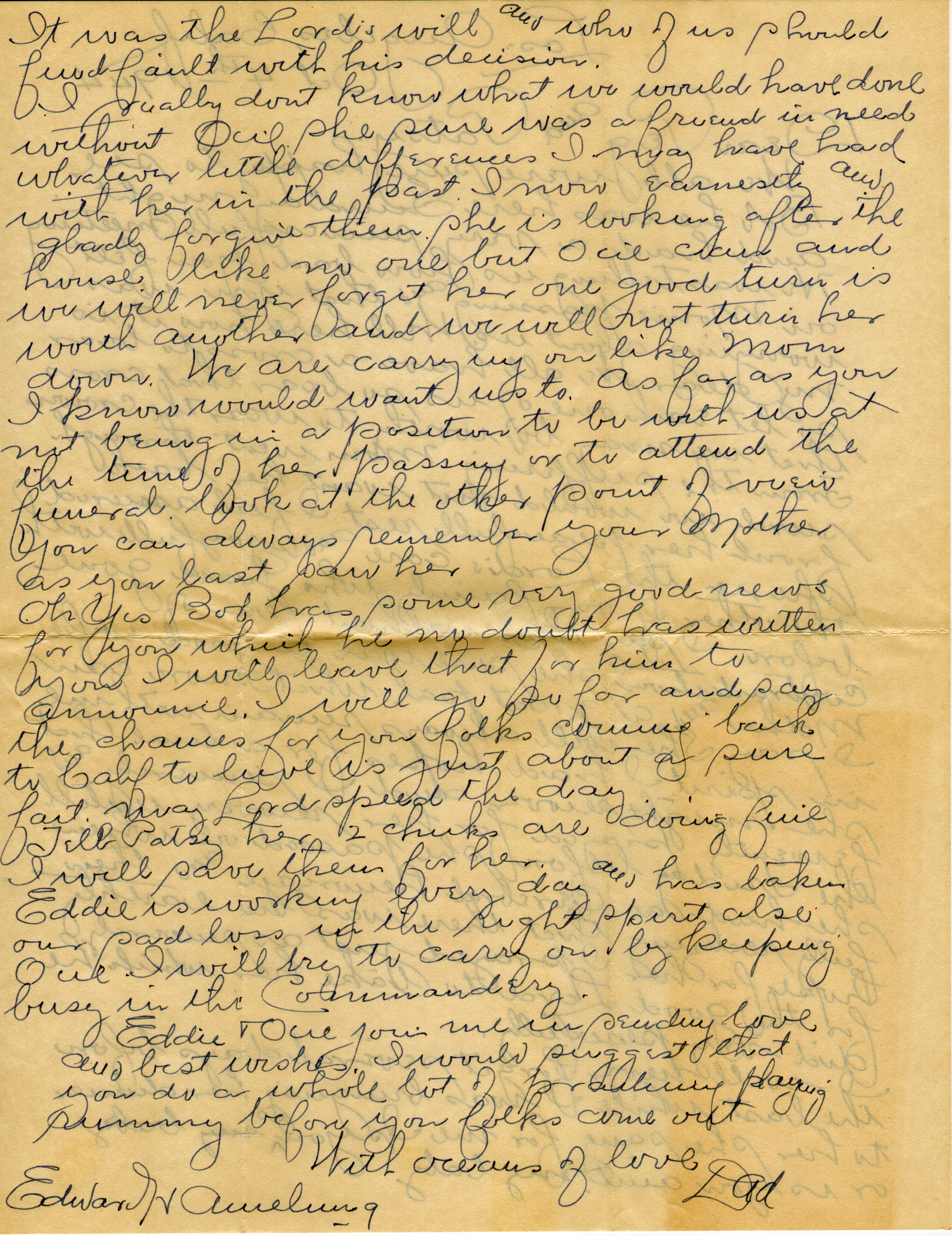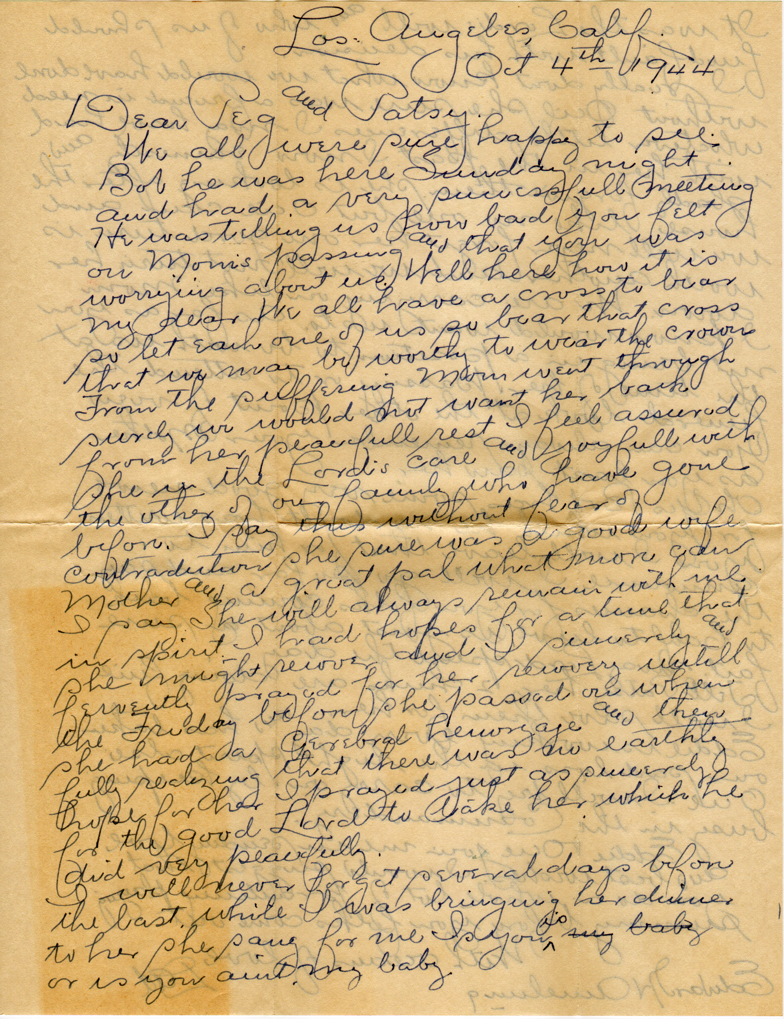 | Amelung, Edward | Letter, 1, 2 | 04 Oct 1944 | Iron | Letter from Edward Amelung, (b. 1868 in Pilot Knob, Mo.) to his daughter. |