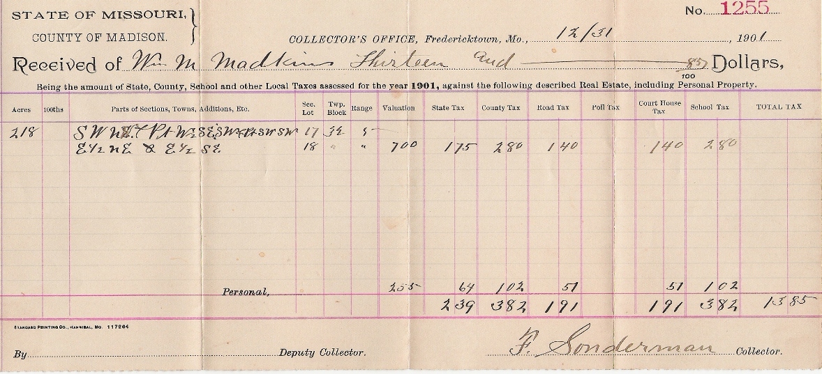 | Matkin, William M. | Tax Receipt | 31 Dec 1901 | Madison | William M. Matkin. |