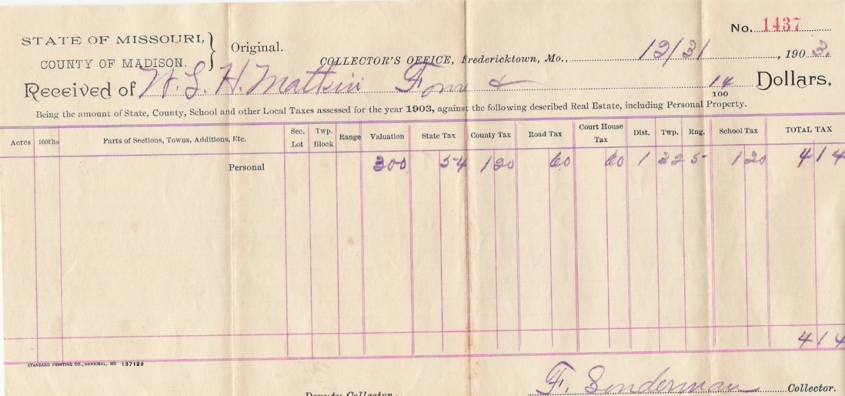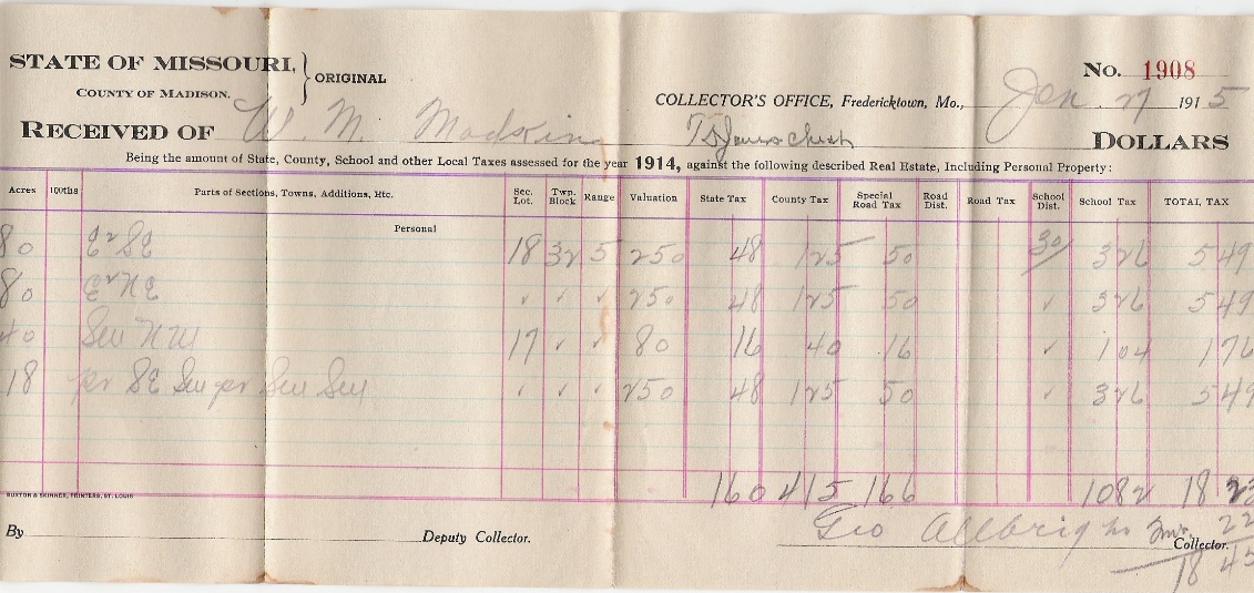| Matkin, W. M. | Tax Receipt | 27 Jan 1915 | Madison | W. M. Matkin |