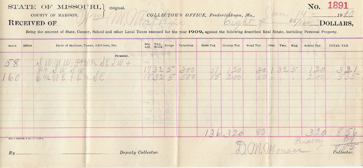 | Matkin, Wm. M. | Tax Receipt | 14 Jan 1910 | Madison | Wm. M. Matkin |