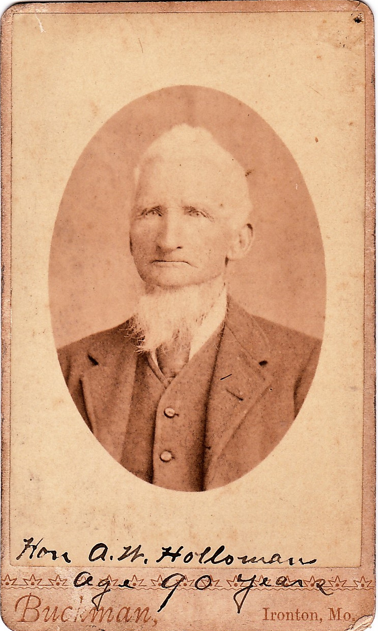 The subject of this notice, ALLAN W. HOLLOMAN, died at his residence, Arcadia, Mo., on Sunday, May 5th, 1895, aged 90 years, 4 months and 4 days.