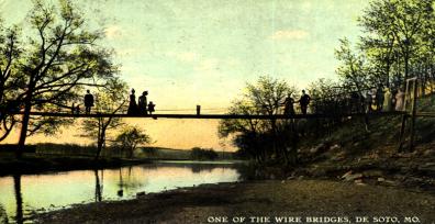 In 1903, DeSoto celebrated the town’s Centennial with parades, fireworks, dedication of the Van Metre stone obelisk, and a hot-air balloon ascension featuring a parachute leap. “Fountain City” supplied drinking water to the 1904 St. Louis World’s Fair.
