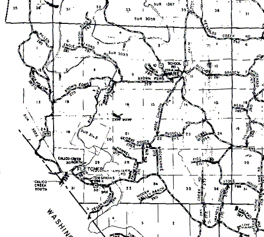 T40N,R3E holds what we believe to be the first farm owned by our great-grandfather, George W PIERCE. It was described as "The East one-half of the Northwest quarter of Section 23 of Township 40 North of Range 3 East". The short north-south section of Russell Rd in section 23 runs through what looks to be just about the middle of that 80 acre tract. This land was originally registered with the (then) General Land Office by Michael MCKEE on May 10, 1824. We now have the original deed from the GLO, which was presumably given by MCKEE to PIERCE when the latter purchased the land. The year of this transaction is unknown, but we believe it was not later than 1850. Our father, Wayne Varney PIERCE, believed this to be the original farm in Missouri of our branch of the PIERCEs. However, we have recently discovered that on October 4, 1842 George W's father, Washington G PIERCE, purchased 80 acres from Mrs S SCAGGS (widow of Mr I SCAGGS) in what looks like (the document is hard to read) sections 28 and 29, T41N,R3E.