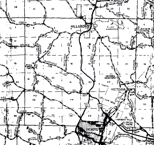 The township is just about centered in the image. It is bounded on the north by the second horizontal line from the top of the map; on the south by the horizontal line running through De Soto; and on the east and west by the first solid vertical line from their respective edges of the map.