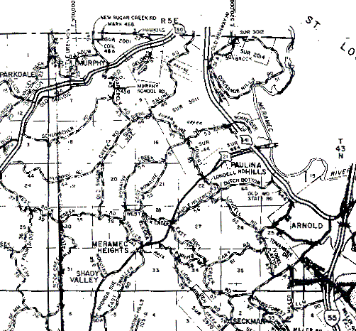 The northern boundary of T43N,R5E is the horizontal line at the top of the map. The western boundary is the first vertical line from the map's left edge, and the southern boundary is the first horizontal line from the map's bottom. The eastern boundary is the vertical line that passes through the "M" of "Elm" just northwest of the highway 55 "road sign" in the lower right corner.