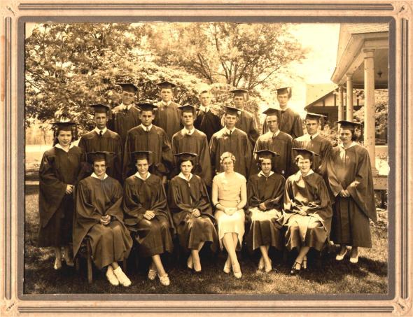 Photo of a graduation ... looks like it may be high school ... but there are no identifying marks at all on the photo as to the identity of the school or subjects in the photo. If you can identify any of the people or the school or date of this photo, please notify Mary at the De Soto Public Library. (posted prior to March 2005)