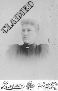 Who is this woman? Is she your grandmother or great-grandmother? The only clue is the photo studio. Please get in touch with Mary at the De Soto Public Library to identify and/or claim. (posted prior to March 2005)