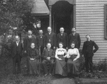 Need to identify all individuals in group photo. Known individuals: Front row sitting on right is Elizabeth Schlecht; Row 2 from right is possibly Cecelia Schlecht; Row 3 from right is Pauline Schlecht; Back row standing on right is Louis SCHLECHT; Row 5 from right is Louis Schlecht (son of Lewis). Contact Larry Heyn or Jim St. John. (posted 12 Aug 2005)