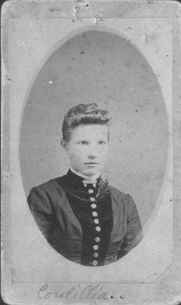 This woman has now been identified as Laura Lee McCORMACK MEDLEY, wife of Millard MEDLEY, and the photo has been claimed by Lee Callender, a descendant of Laura Lee's sister. Laura Lee was the sister of her grandmother (her mother was named for Laura) and she is very happy to have the photo. Congratulations go out to Lee Callendar for being reunited with this family treasure. (posted prior to March 2005)