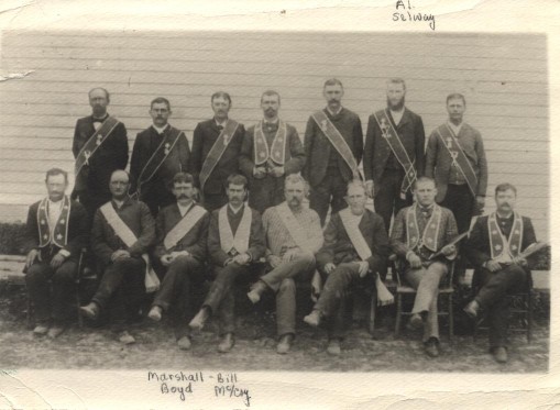 Lodge, 1885. Only 3 of these men are identified,