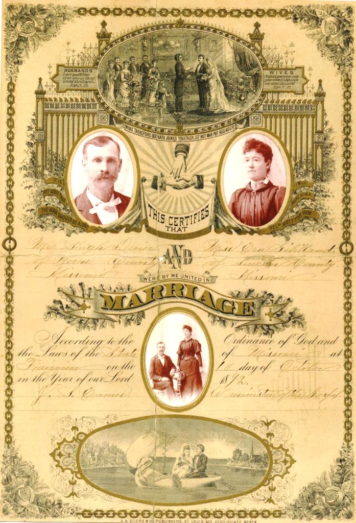 Hugh and Eva (Gililland) Devier Marriage Certificate