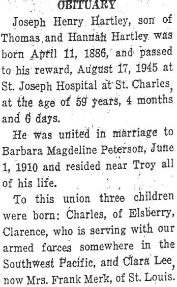 Obituary for Joseph Henry Hartley (1886-1945)