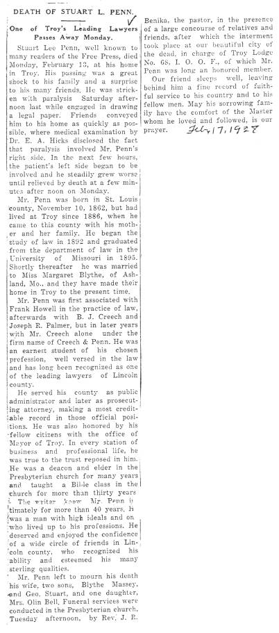 Obituary for Stuart L. Penn (1862-1928)