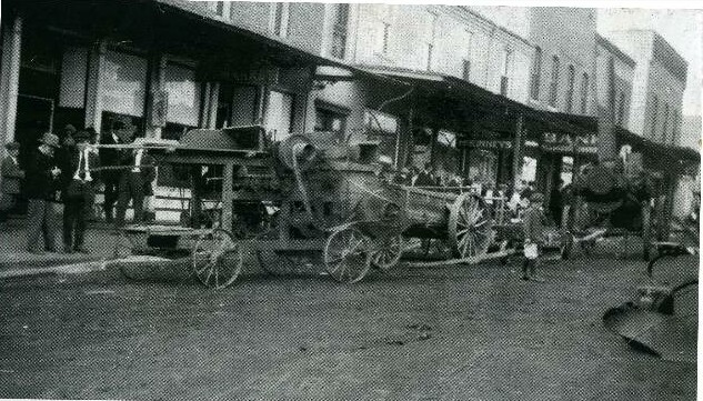 Old Street View, one sign says M. Kinney's, behind it there is a Bank sign.