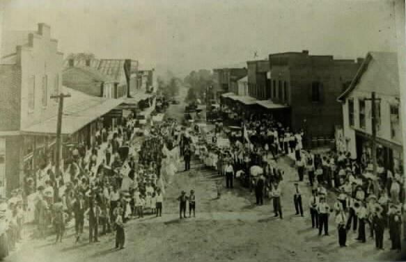 This 1912 photo was taken of the Prohibition Parade in Fredericktown, MO. It is looking down from the Courthouse to East Main.