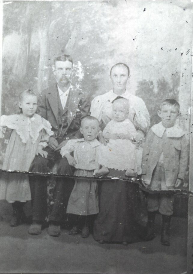 | Family of William Anderson Howell and Lilly Amanda Wilson Howell taken about 1898 at Mine La Motte. L-R: Blanche Howell, Wm A. Howell, Grover Howell, Lilly Howell holding Everett Howell, and George Howell. |