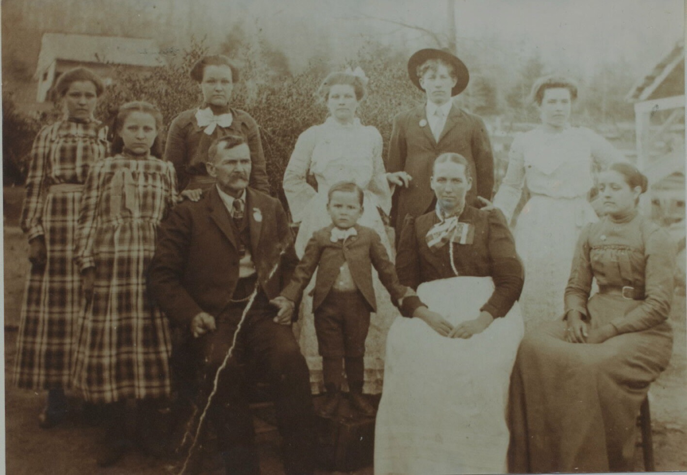 Standing L-R: Cora Lee, Laura Agnes, Talitha M., & Allie Cordelia Young, Eli & Permelia Minor.