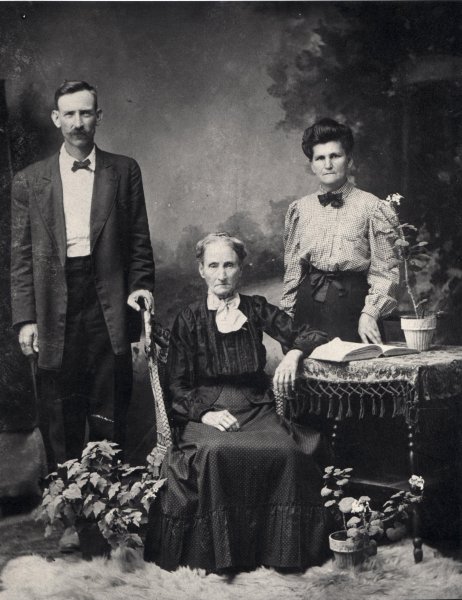 James Lane Lunsford, his wife Nancy Howard Lunsford (standing) his mother, Mary Ann Gross Lunsford (sitting).