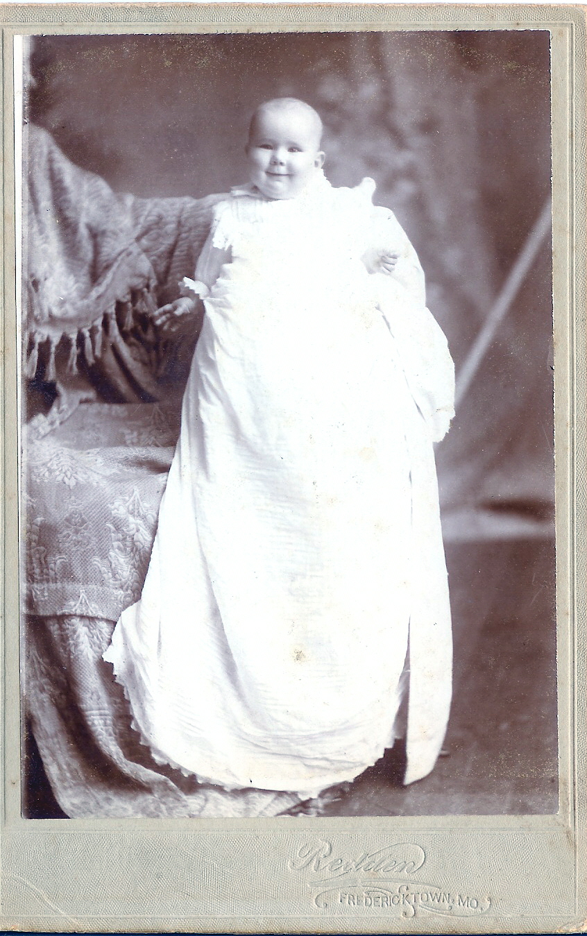 | This photo was submitted by Sharon (Hartzell) Smith, she found it in an antique shop in St. Louis. The logo on the bottom of says Redden, Fredericktown, MO. If you can name this child please email me. |