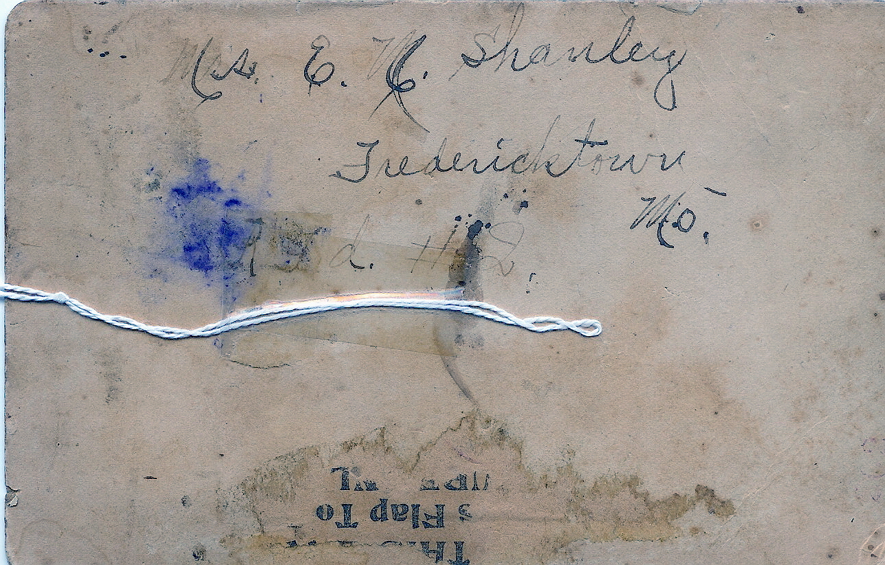 This photo of a gentleman, doesn't have a photographer name on the front, but on the back it is handwritten, Ms. E. M or W. Shanley, Fredericktown, Mo. This photo was submitted by Sharon (Hartzell) Smith, she found it in an antique shop in St. Louis. Please email if you have information about this photo. |