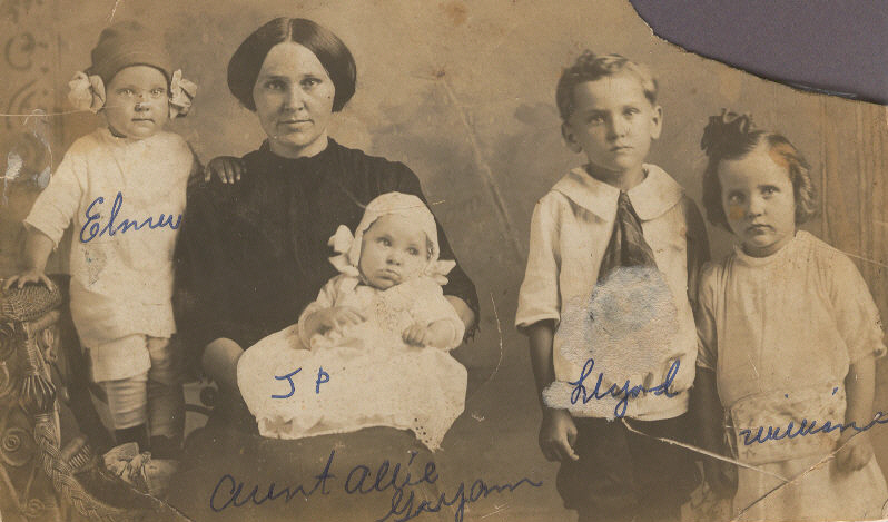 Grayam's - Elmer, Allie (McRoy) holding J. P., Lloyd Willean This is a picture of Price Grayam's widow & their children taken just