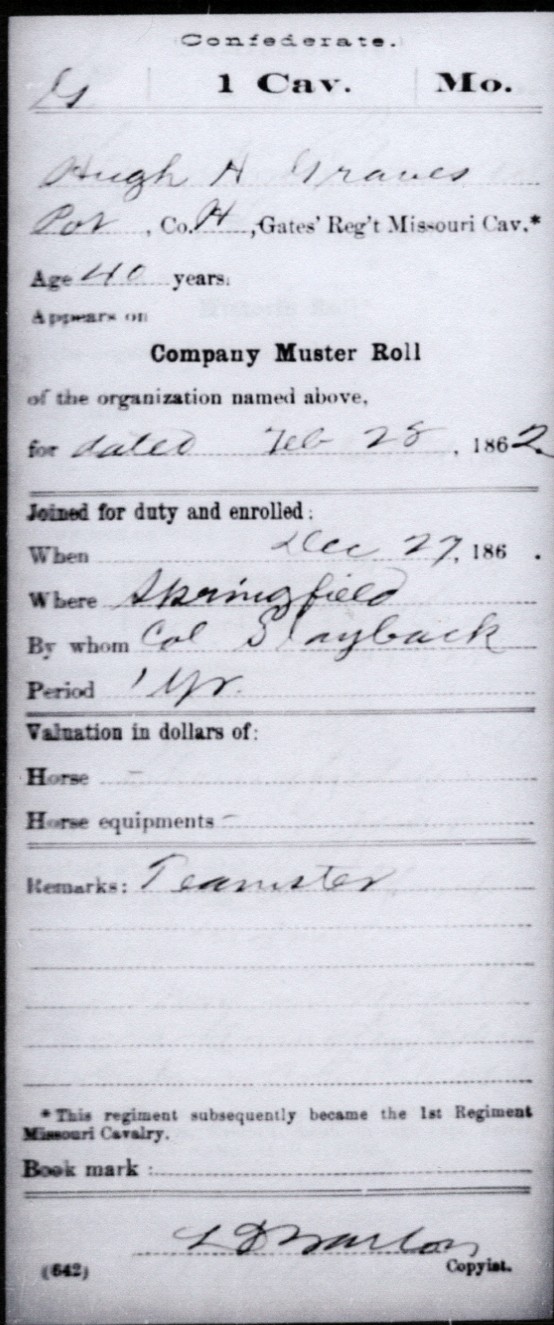 Pool, Horatio - Missouri Home Guard - Dallas Riedesel <dallas1056@comcast.net> - military record |